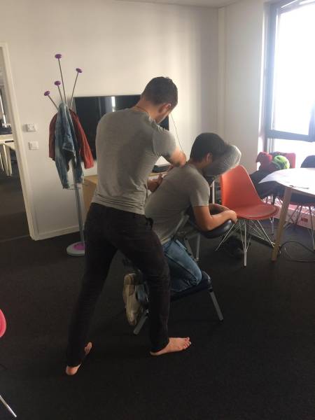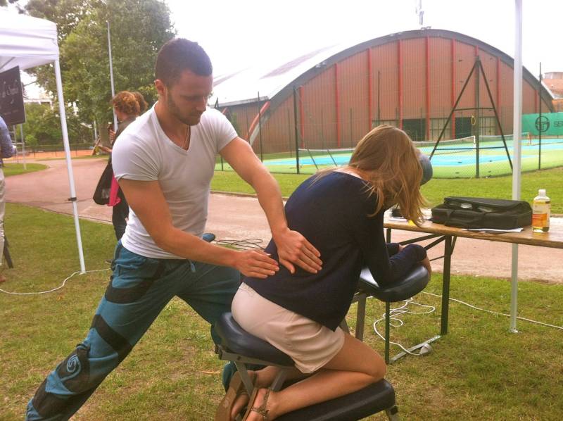 Alexandre exerce le Amma Assis depuis 2014 dans un large éventail de structures : entreprises privées, institutions publiques, salons professionnels ou associations. Voici pourquoi cette technique s’adapte si bien aux milieux professionnels :